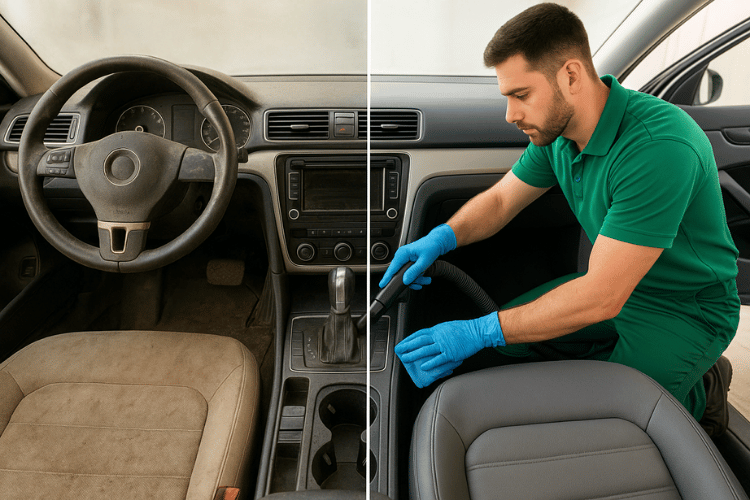Full Interior Inspection – We examine seats, mats, dashboard, and side panels to decide the safest and most effective cleaning method.